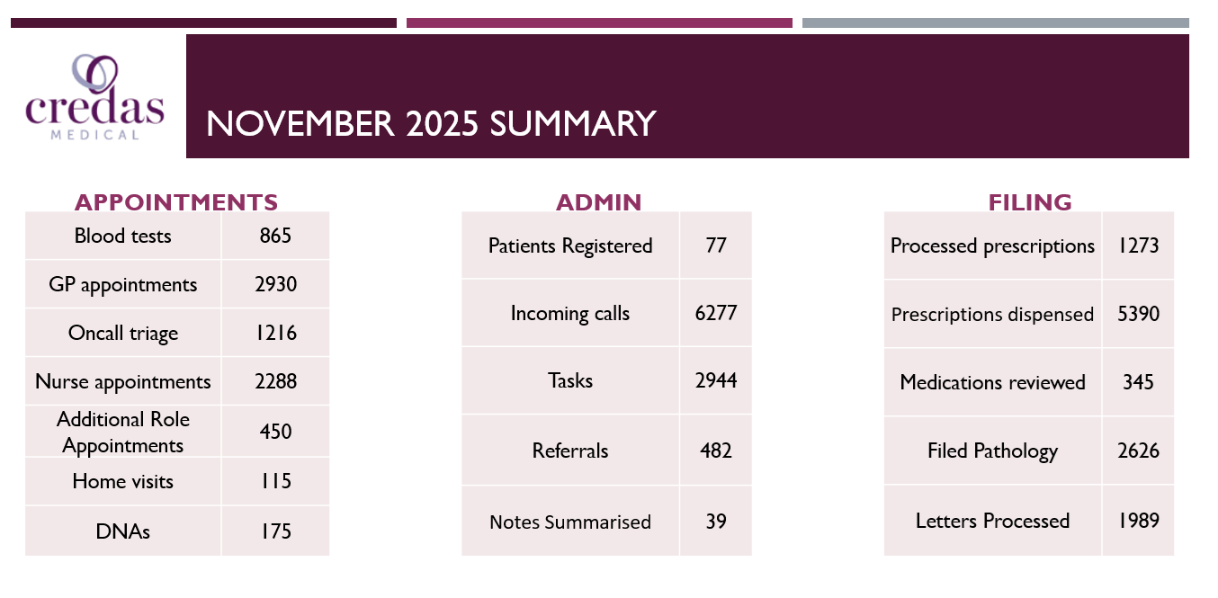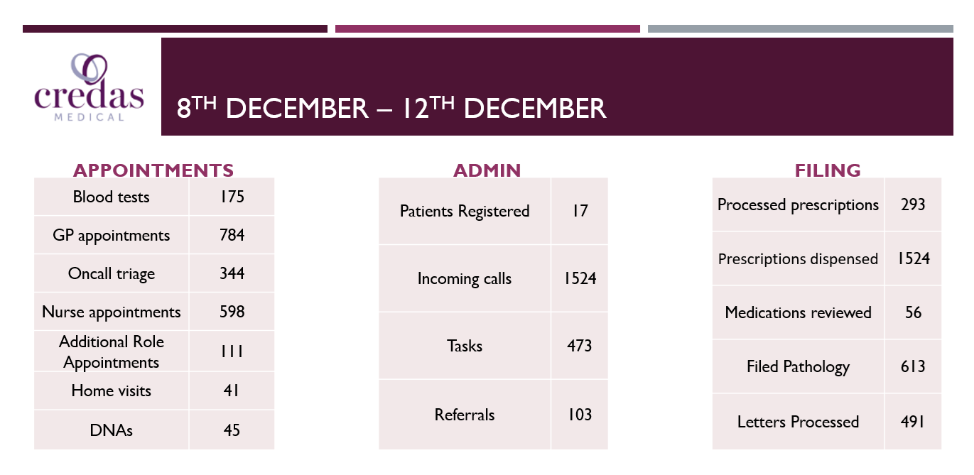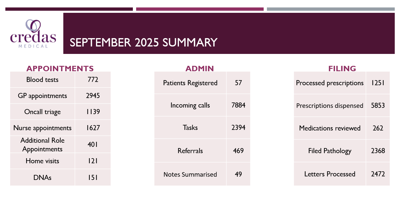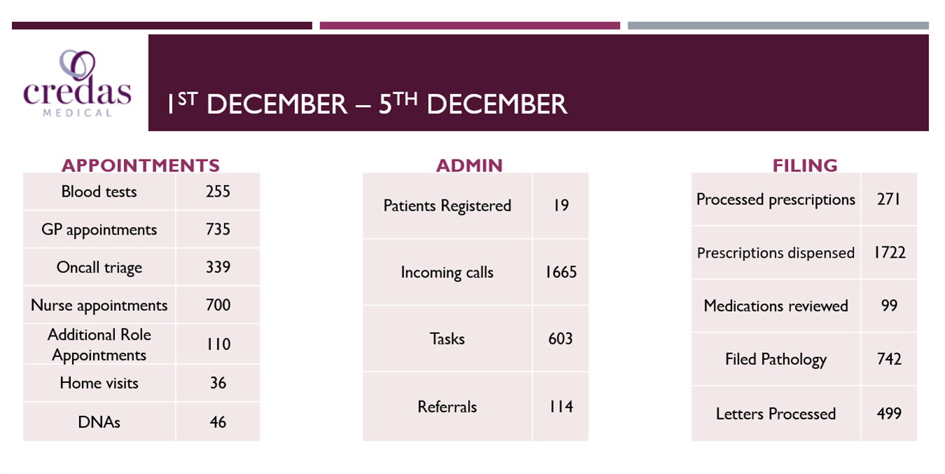 - The on-call triage GP took 4,459 calls and our reception team answered 27,259 calls.